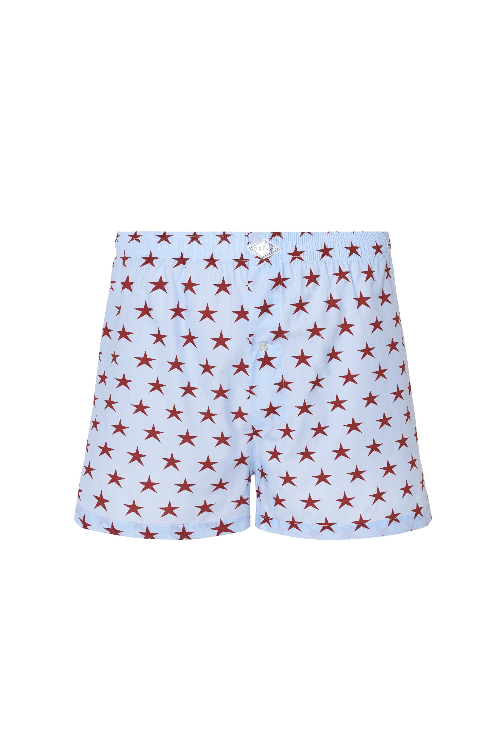 Calzoncillo de tela azul claro con estampado de estrellas.