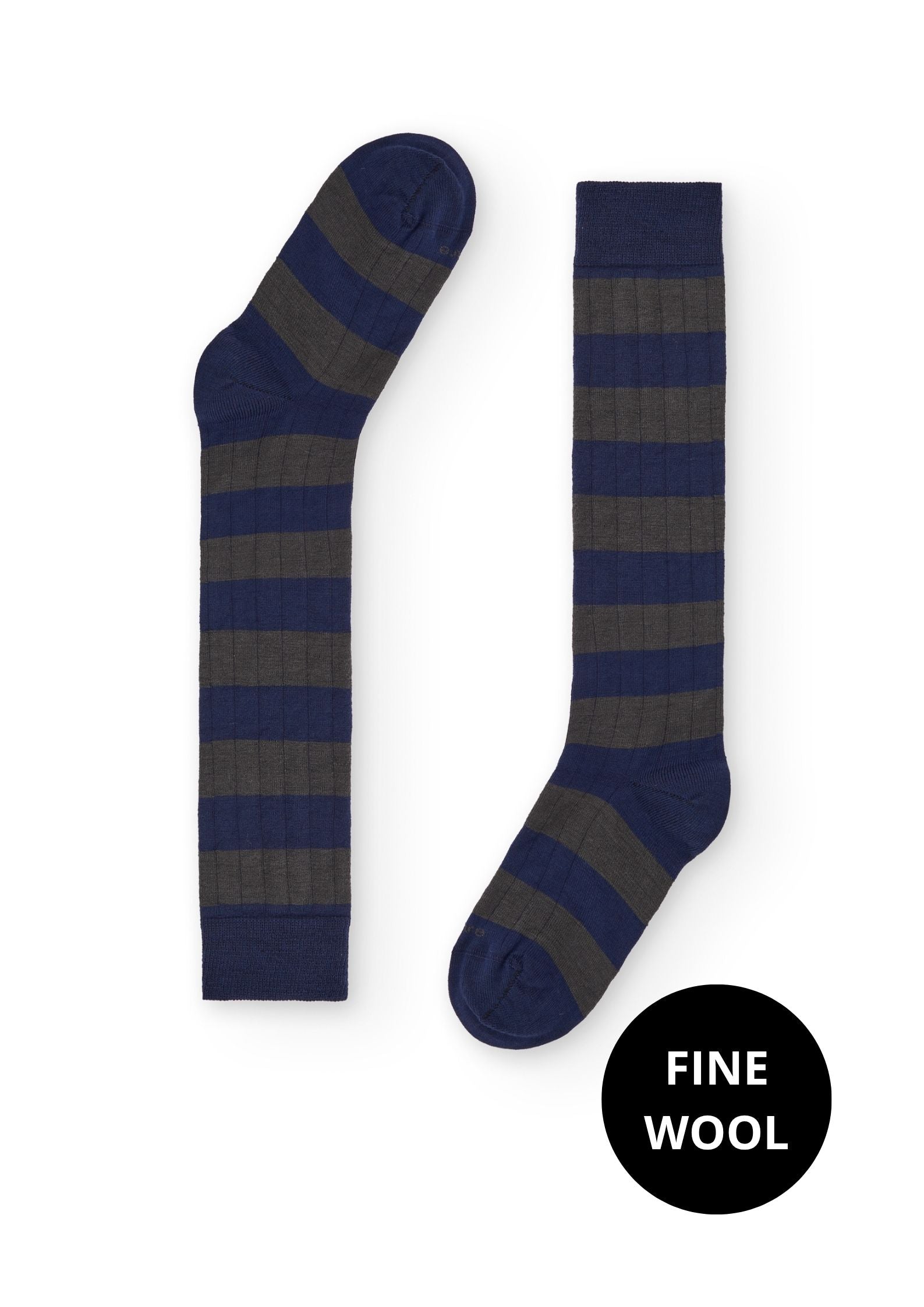 Calcetín Rugby gris liso - marino de lana merino. Composición: 100% lana. Tejidos en España.