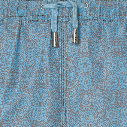 Green swimsuit with gold diamond patterns.