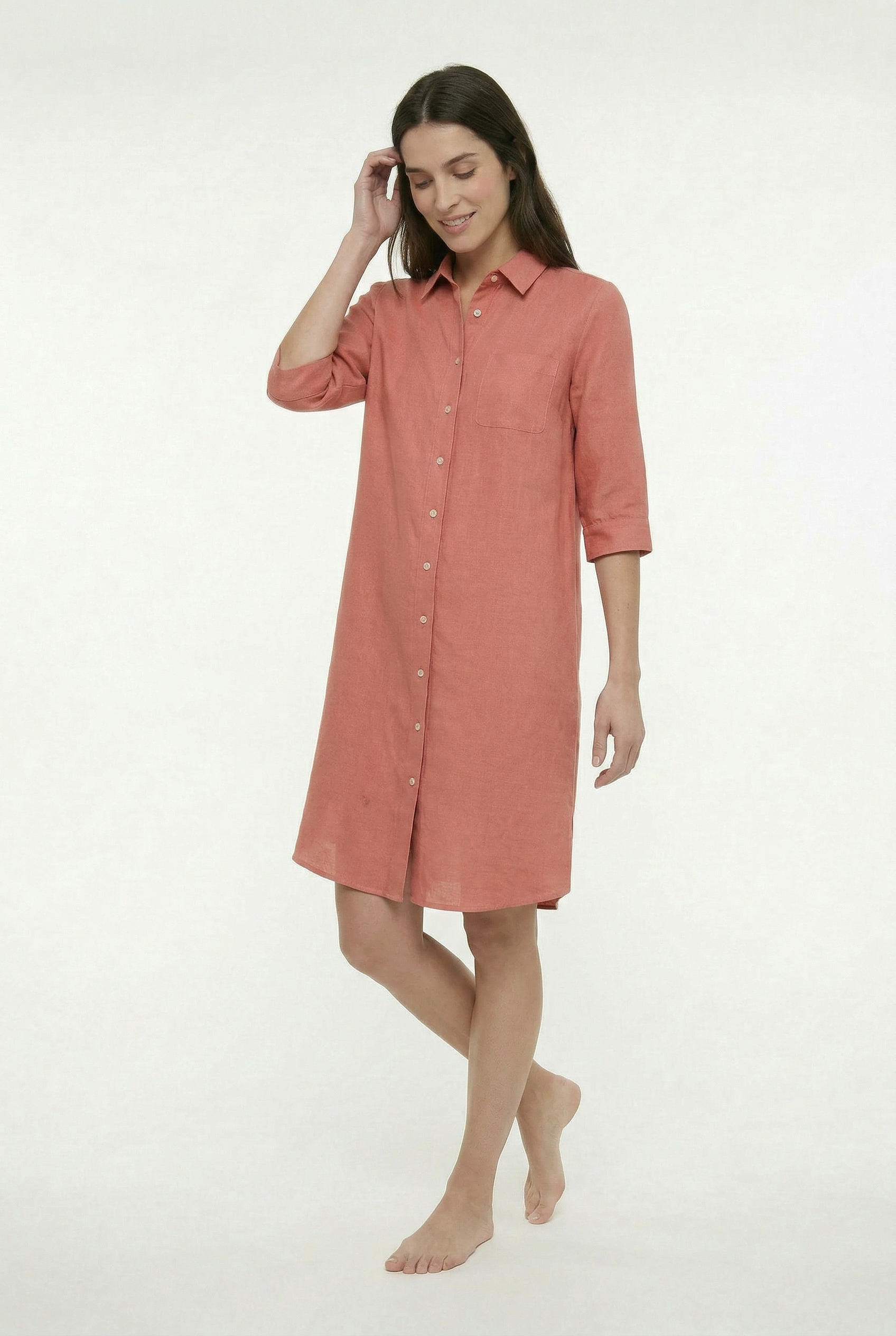 Camisola corta de manga ¾ confeccionada en tejido de lino.