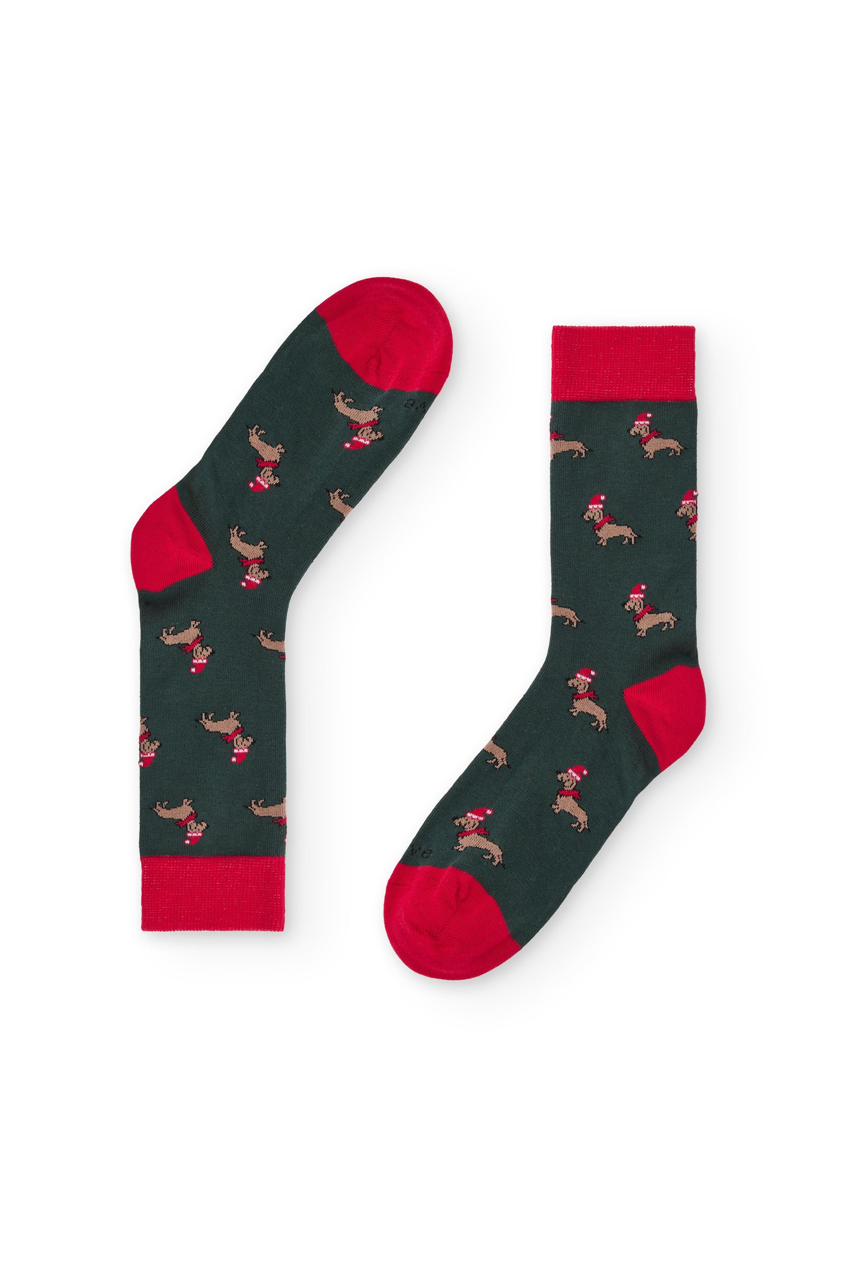 Long burgundy adult sock with snowman print. Composition: 90% cotton, 8% Polyamide, 2% Lycra. Skillfully woven in Spain.