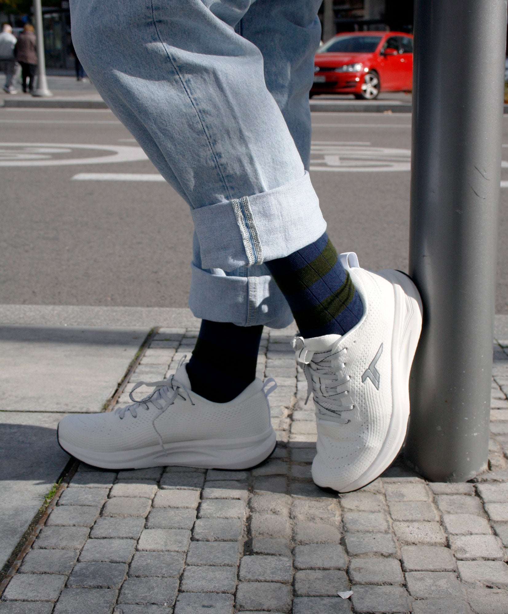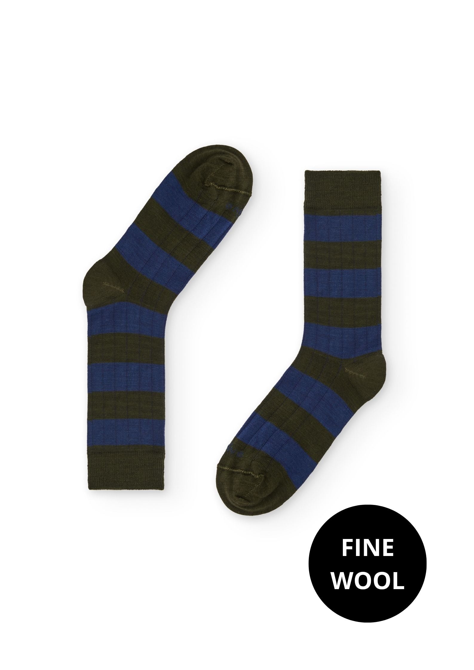 Calcetín Rugby marino - caqui de lana merino. Composición: 100% lana. Tejidos en España.