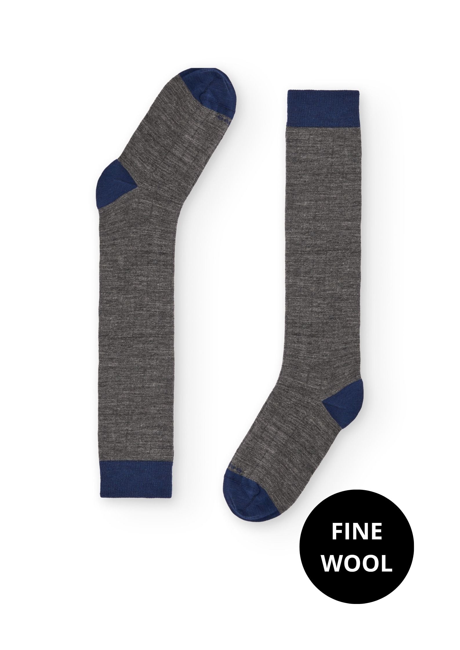 Calcetín Oxford gris melange de lana merino. Composición: 100% lana. Tejidos en España.