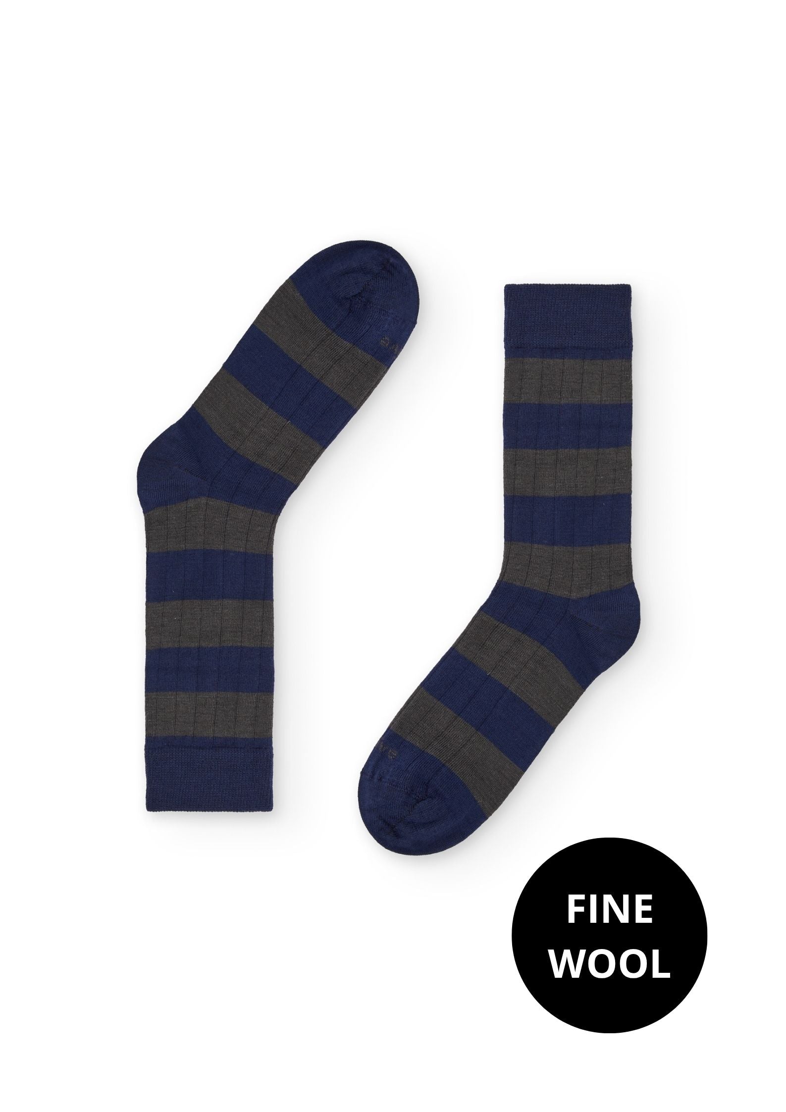 Calcetín Rugby gris liso - marino de lana merino. Composición: 100% lana. Tejidos en España.