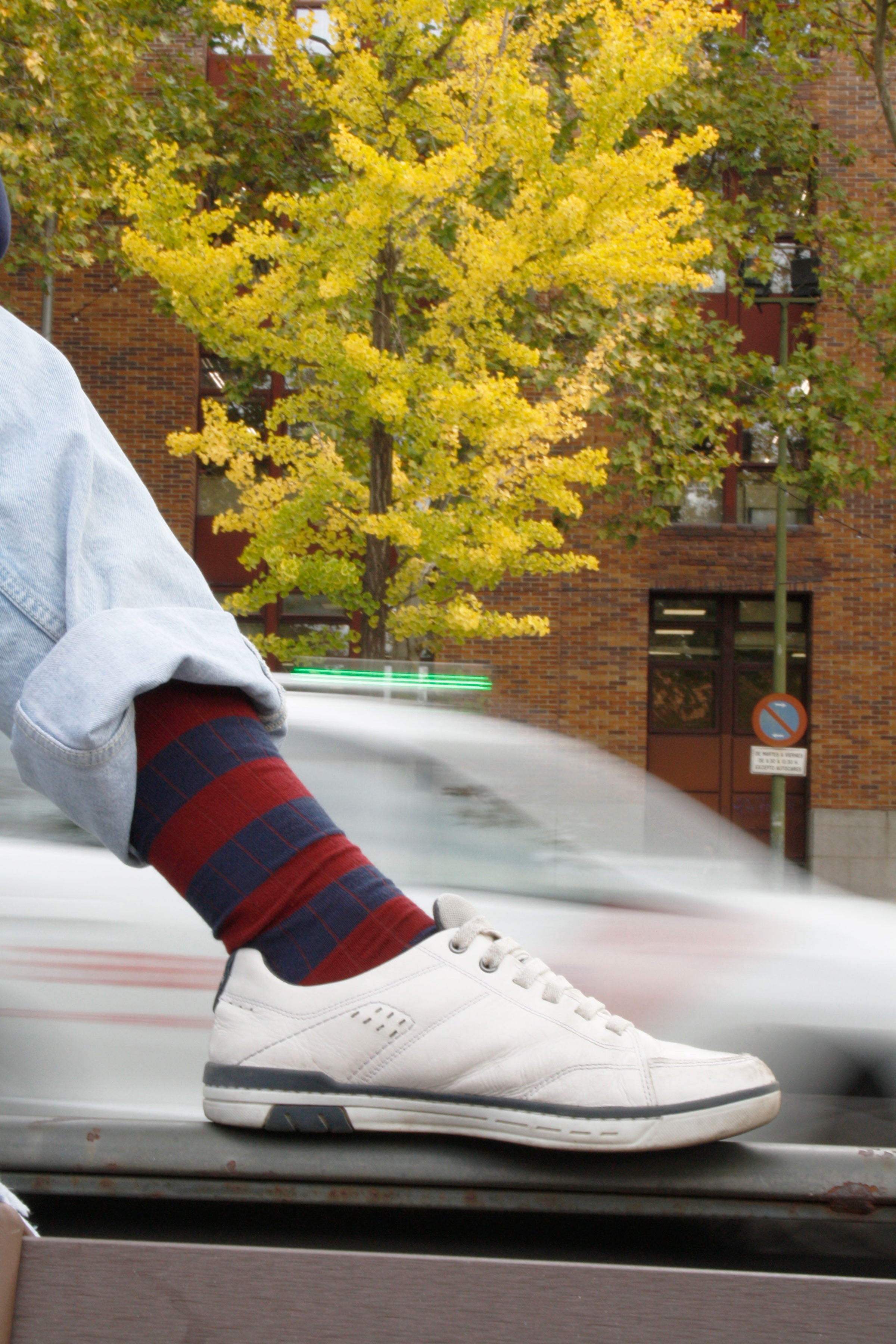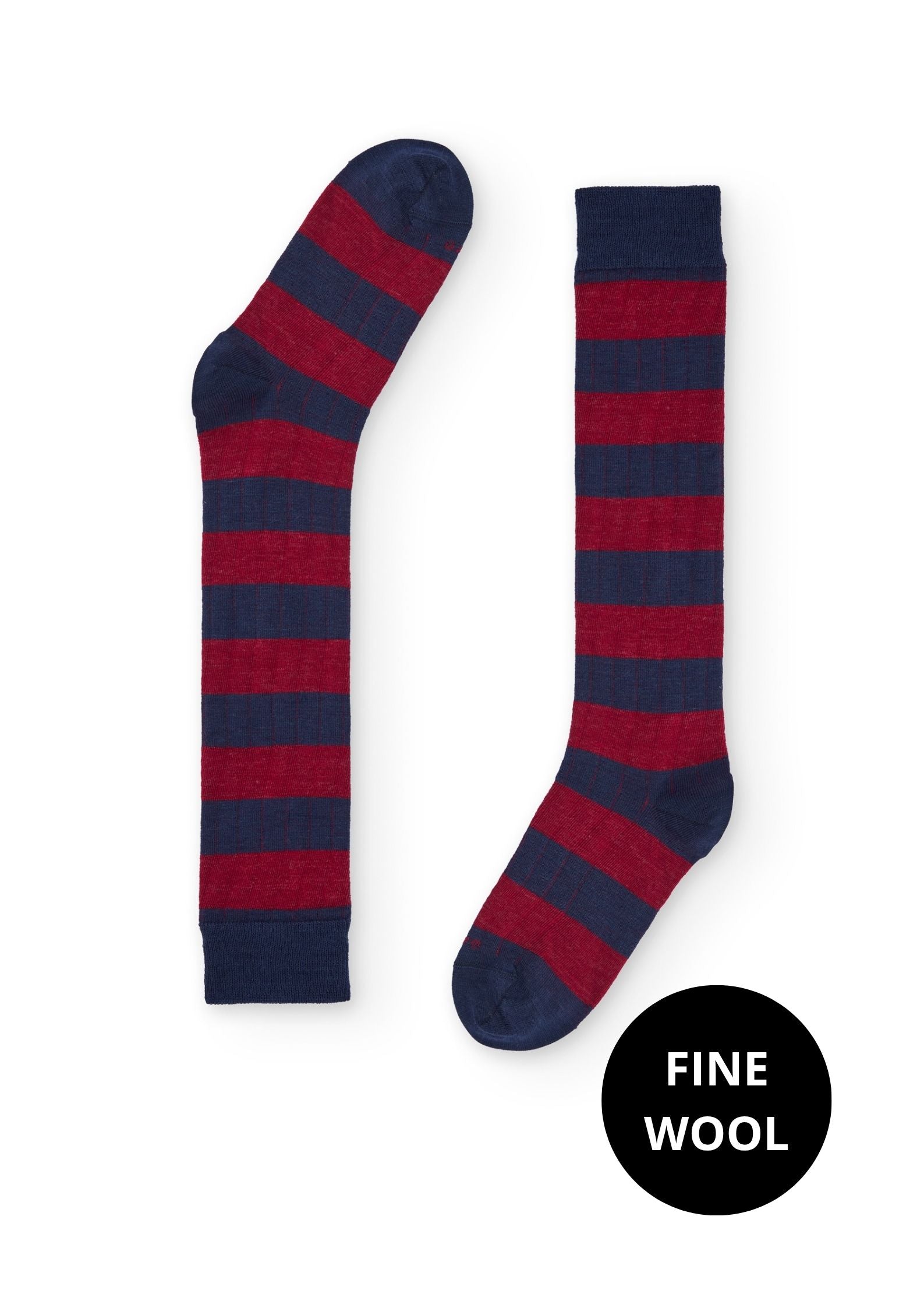 Calcetín Rugby rojo - marino de lana merino. Composición: 100% lana. Tejidos en España.
