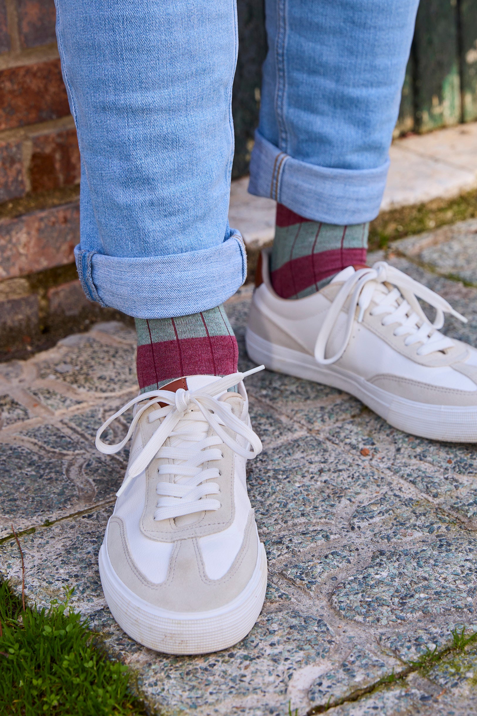 Calcetines de rayas anchas en color rosado y verde .