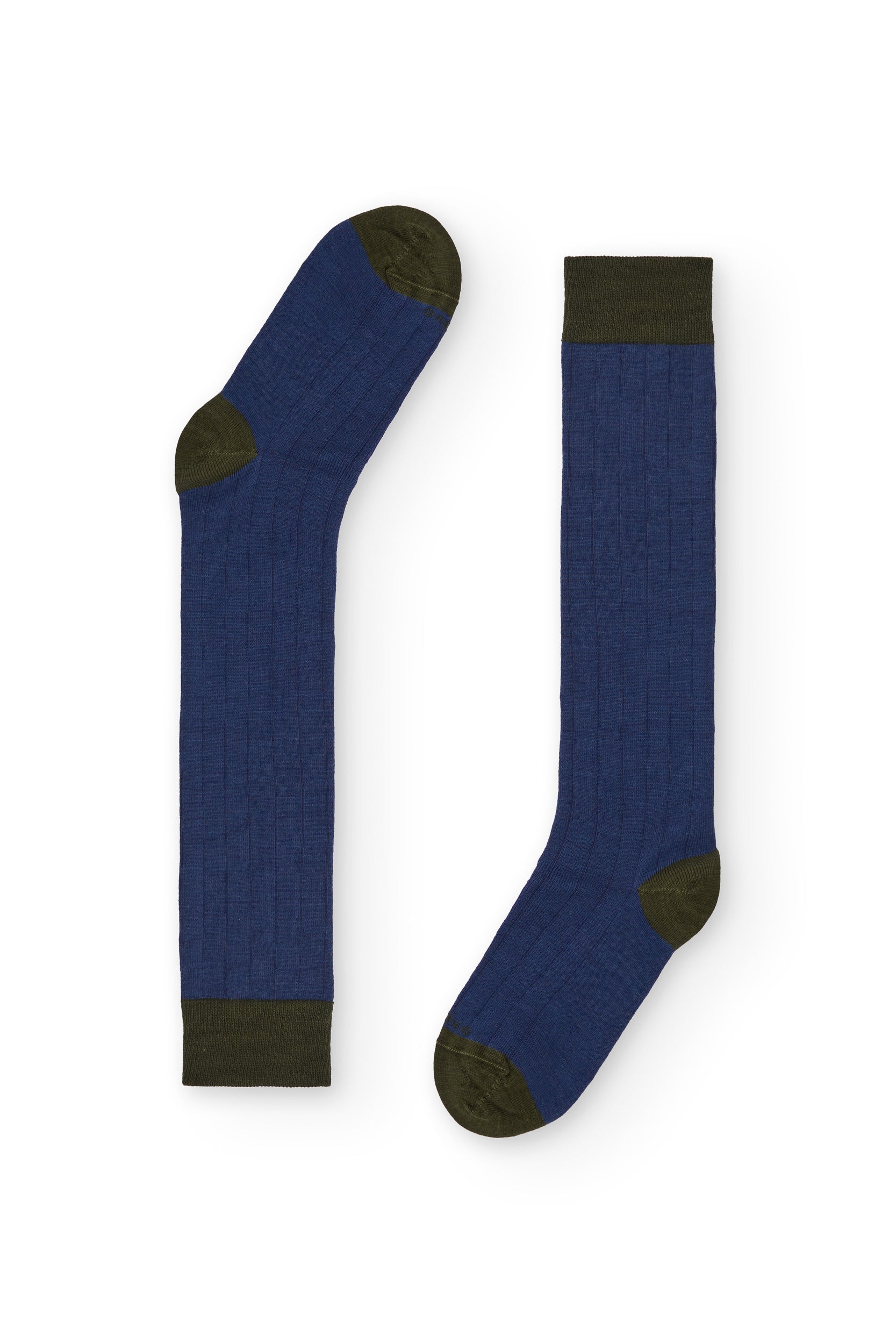 Calcetín Oxford azul marino de lana. Composición: 100% lana. Tejidos en España.