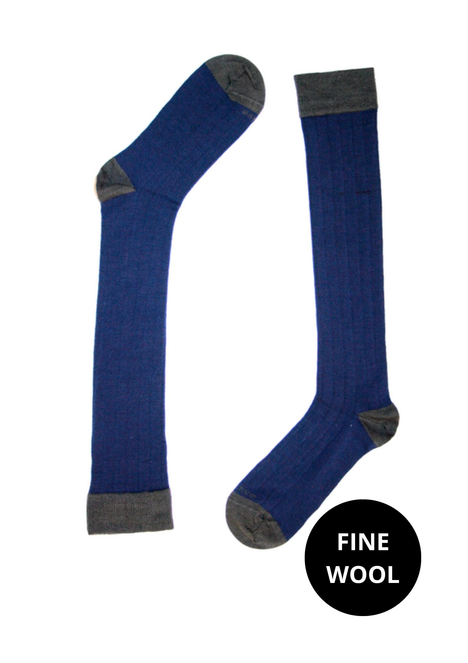 Calcetín Oxford marino de lana merino. Composición: 100% lana. Tejidos en España.