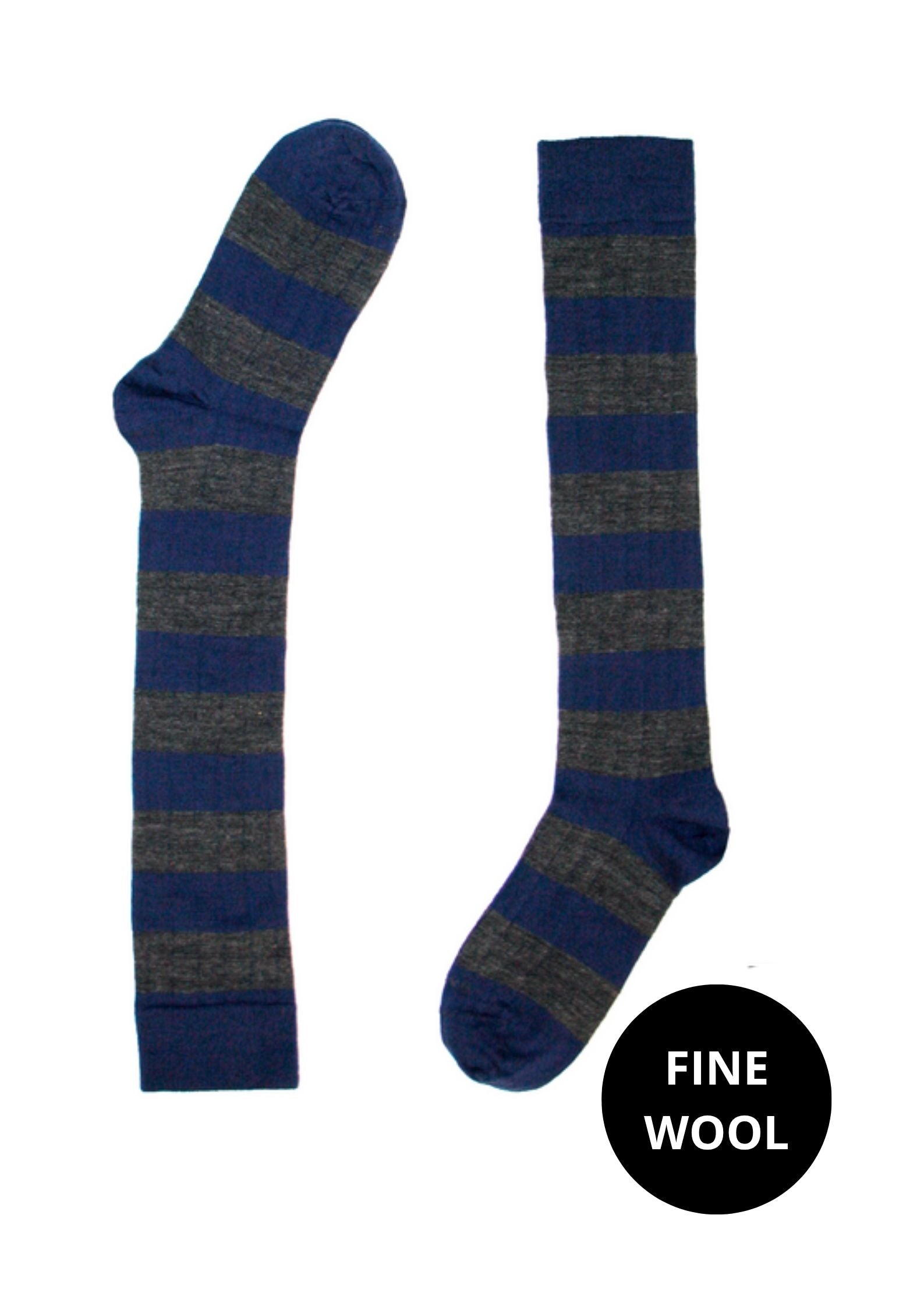 Calcetín Rugby marino-gris de lana merino. Composición: 100% lana. Tejidos en España.